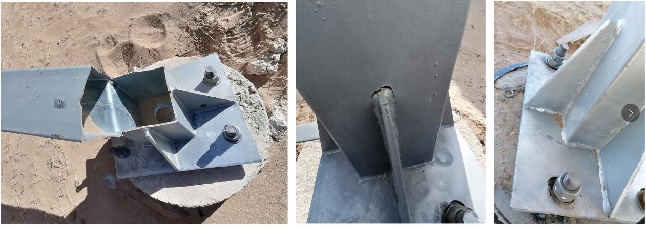 本項目斜單軸跟蹤系統(tǒng)的主動避險缺失,當大風來臨時,跟蹤系統(tǒng)沒有將組件進行放平,而是依然按照既定的程序進行追日,最終在大風作用下,當系統(tǒng)的體型系數(shù)較大時,破壞即從最薄弱的結構開始發(fā)生。