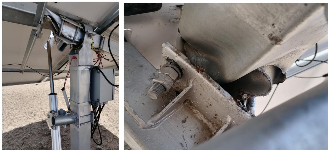 經(jīng)現(xiàn)場勘查,此次事故由斜單軸跟蹤系統(tǒng)自身問題、施工質量問題以及后期維護等多個因素疊加耦合而成。主要原因如下: