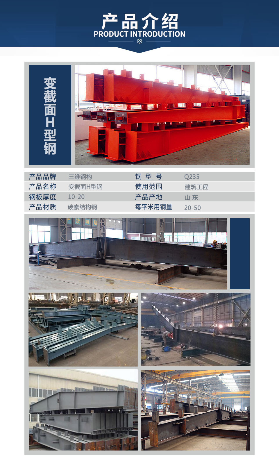 是由工字型鋼優(yōu)化發(fā)展而成的一種斷面力學(xué)性能更為優(yōu)良的經(jīng)濟(jì)型斷面鋼材尤其斷面與英文字母“H”相同而得名,分為埋弧焊H型鋼和高頻焊H型鋼。 由于H型鋼的各個(gè)部位均以直角排布,因此H型鋼在各個(gè)方向上都具有抗彎能力強(qiáng)、施工簡(jiǎn)單、節(jié)約成本和結(jié)構(gòu)重量輕等優(yōu)點(diǎn),已被廣泛應(yīng)用。